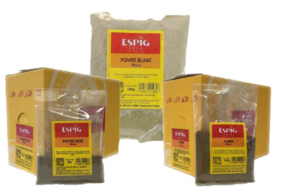 - Poivre noir moulu - Cumin moulu - Gingembre moulu - Curcuma moulu - Zaatarlibanais - Piment doux moulu - Etc ...