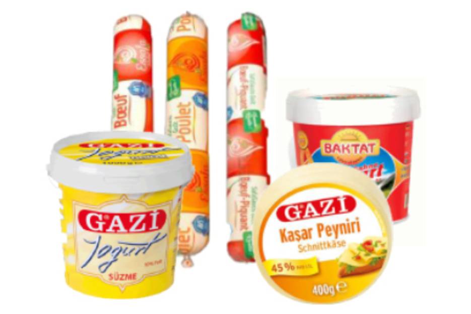 - Sucuk Parmak 500g/1kg, - Hot-dog, Cheeseburger, - Ayran pot de 250ml, - Fromage doux, fromage combi, - Erzin Klasik, - Fromage Kas, - Yaourts, - Pâte Filo feuilleté, - Etc ...